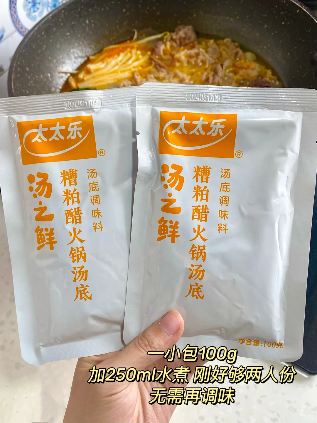 - 姐妹们🙋♀️🙋♀️又发现一个涮海鲜神器! 再来点水煮菜绝了! - ✨太太乐的糟粕醋底料,酸辣鲜香,随便煮点啥都好绝!用了海南特色的糟粕醋调味酱,有一股大米发酵的醇香。 ✨里面还加了黄灯笼辣椒酱,带来鲜辣的味道 煮出来的汤就是酸酸辣辣的,一整个清爽又开胃!!汤都喝了个精光~ - ✅一小包100g,加250ml左右的水煮出来刚好是两人份,无需再调味贼方便!在家直接还原地道海南糟粕醋风味~ 煮点喜欢的菜啊肉啊,怎么做都好吃!