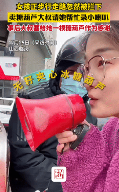 在山西临汾,一位女孩在下班途中偶遇卖糖葫芦的大爷求助。女孩性格开朗,毫不犹豫地答应帮忙吆喝。令人惊喜的是,尽管她非科班出身,但录音效果却异常出色。