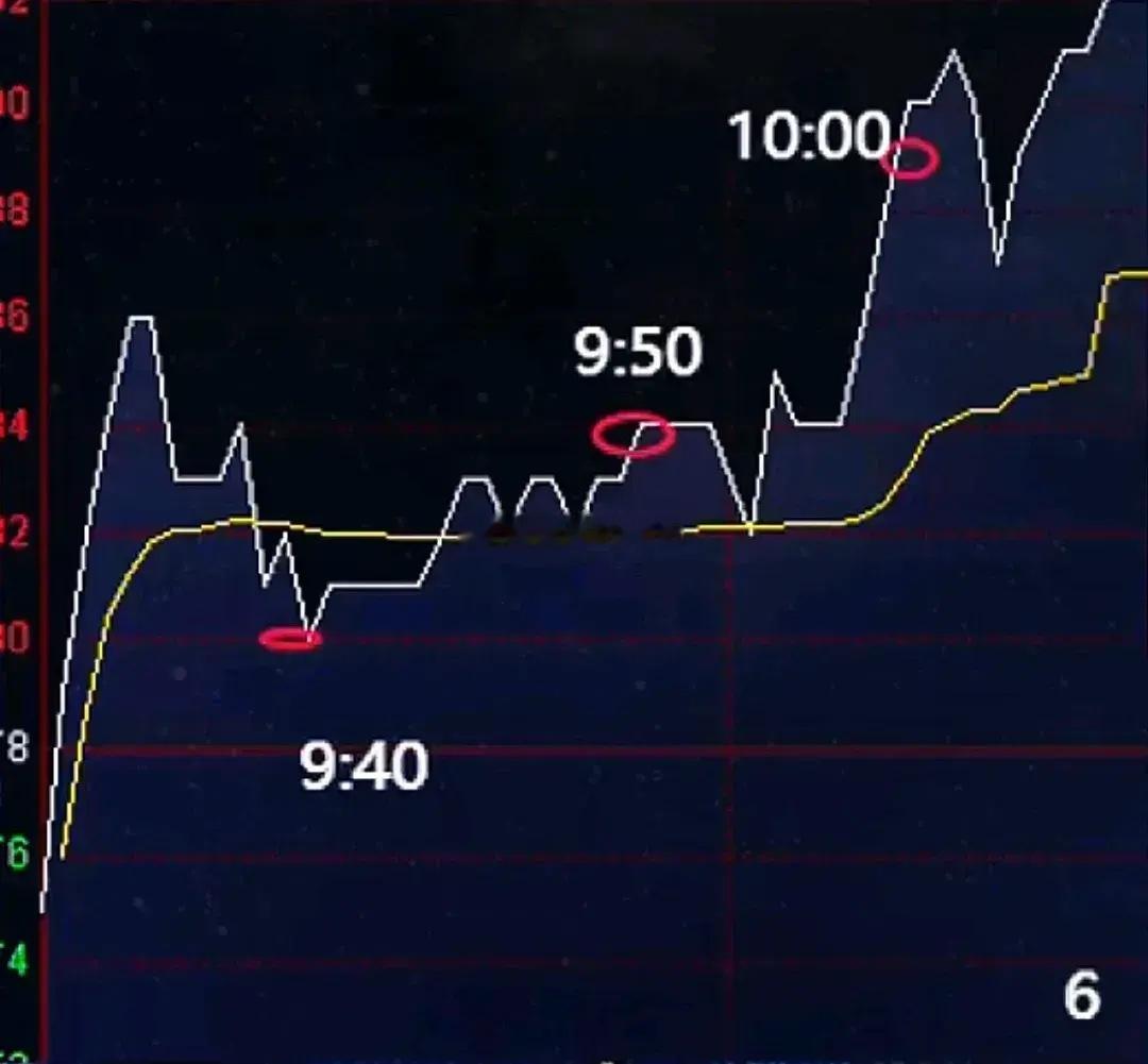 4. 两低一高上穿均价线:大概率筑底反弹,紧盯机会做差价。若9:40和10:00股价较低,9:50股价较高且上穿均价线,说明股价在低位获得支撑,有望反弹。