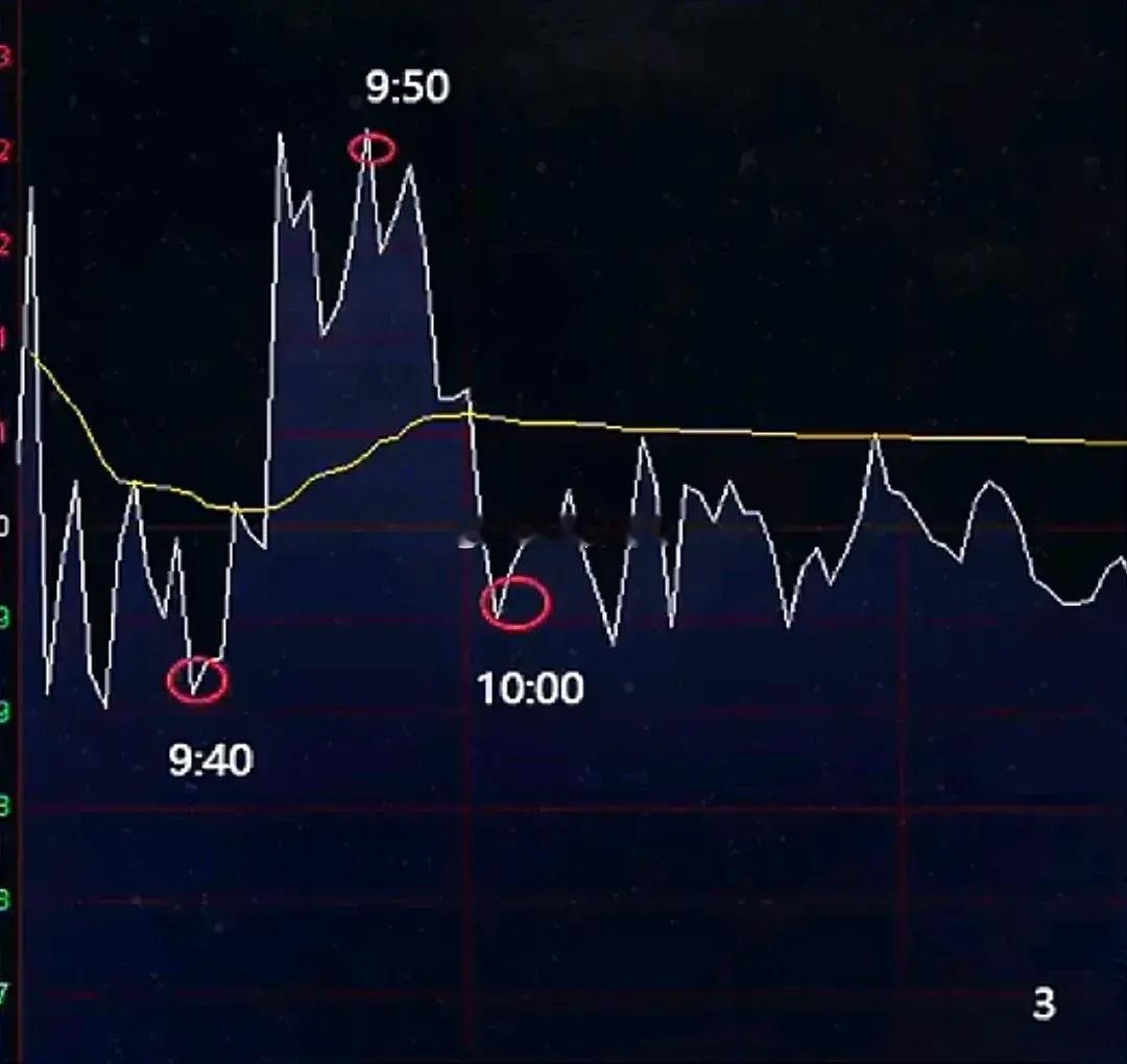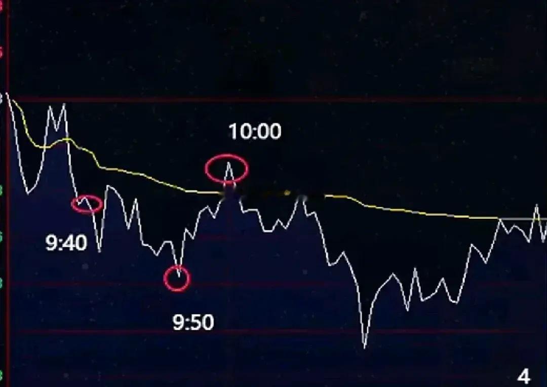 3. 两高一低且跌破均价线:行情处于强势震荡状态,需多看少动。比如9:40和9:50股价较高,10:00股价较低且跌破均价线,此时多空双方争夺激烈,不宜盲目操作。