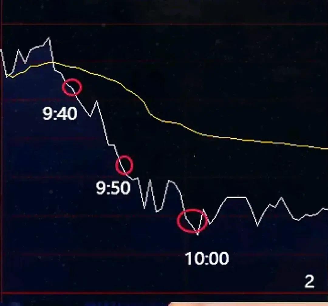 2. 三点降低并跌破均价线:行情向下趋势明显,应立即离场避险。当三个时间点股价依次降低且跌破均价线,表明空方占据主导,股价大概率持续下跌。
