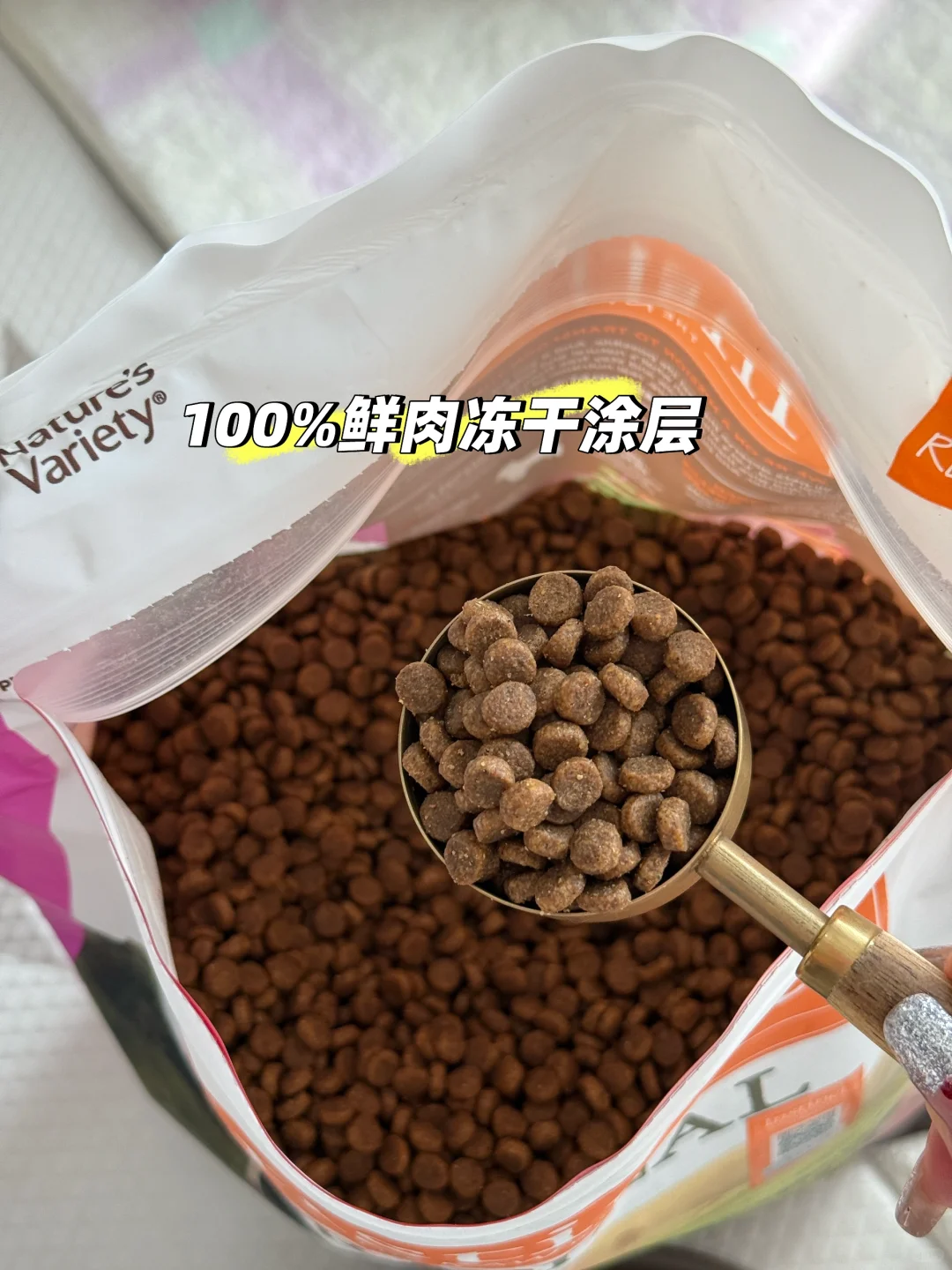 ➡狗粮里添加了三文鱼油,富含Omega3和Omega6,同步解决美毛需求,颗粒还小小的,狗粮清爽不油腻,适口性也是挺好的(Rich之前有挑食问题,现在第二袋快吃完了也还没腻)