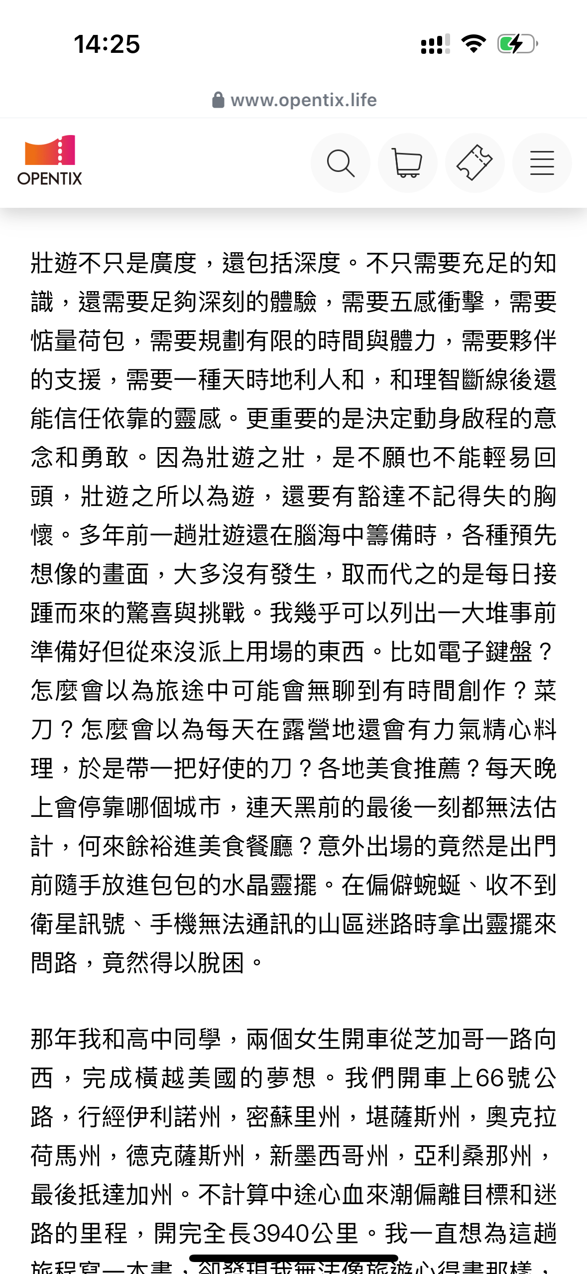 「壮游不只是广度,还包括深度。不只需要充足的知识,还需要足够深刻的体验,需要五感衝击,需要惦量荷包,需要规划有限的时间与体力,需要伙伴的支援,需要一种天时地利人和,和理智断线后还能信任依靠的灵感。更重要的是决定动身启程的意念和勇敢。因为壮游之壮,是不愿也不能轻易回头,壮游之所以为游,还要有豁达不记得失的胸怀。」