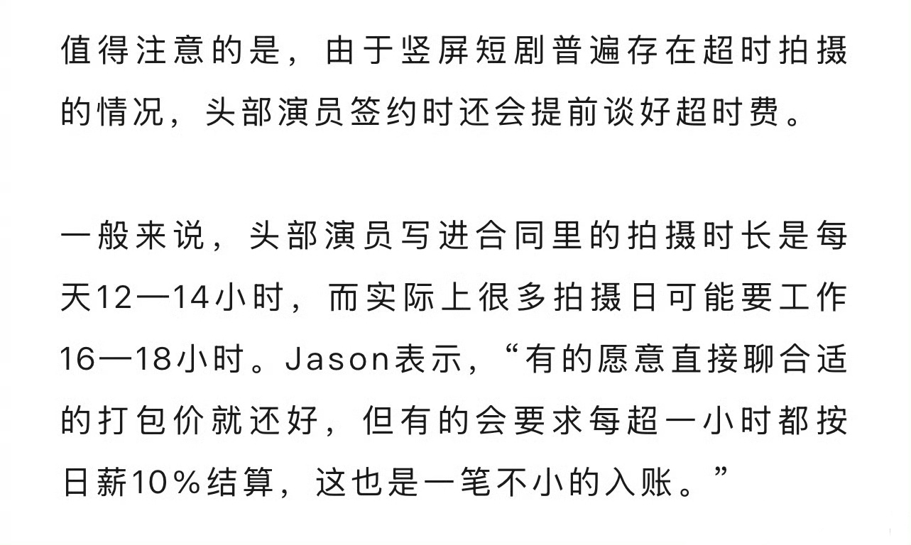 竖屏短剧头部演员,日薪在1-3万,超时有高额超时费。