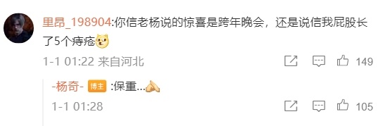 结果今日凌晨在回复网友时又改口称:年底惊喜就是B站跨年晚会。