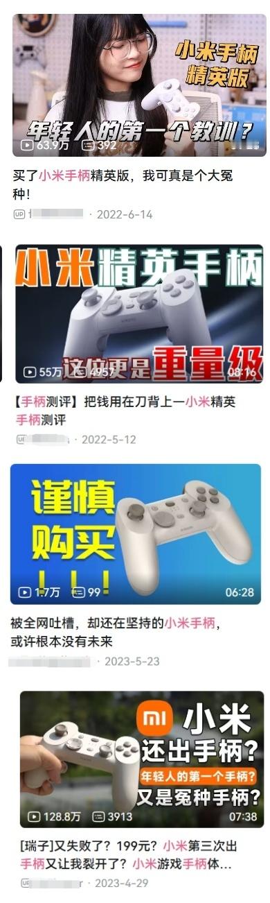 *图6为与理想手柄外形几乎一致的小米某款手柄,根据UP主的描述:曾因体验不佳被游戏玩家群体吐槽。