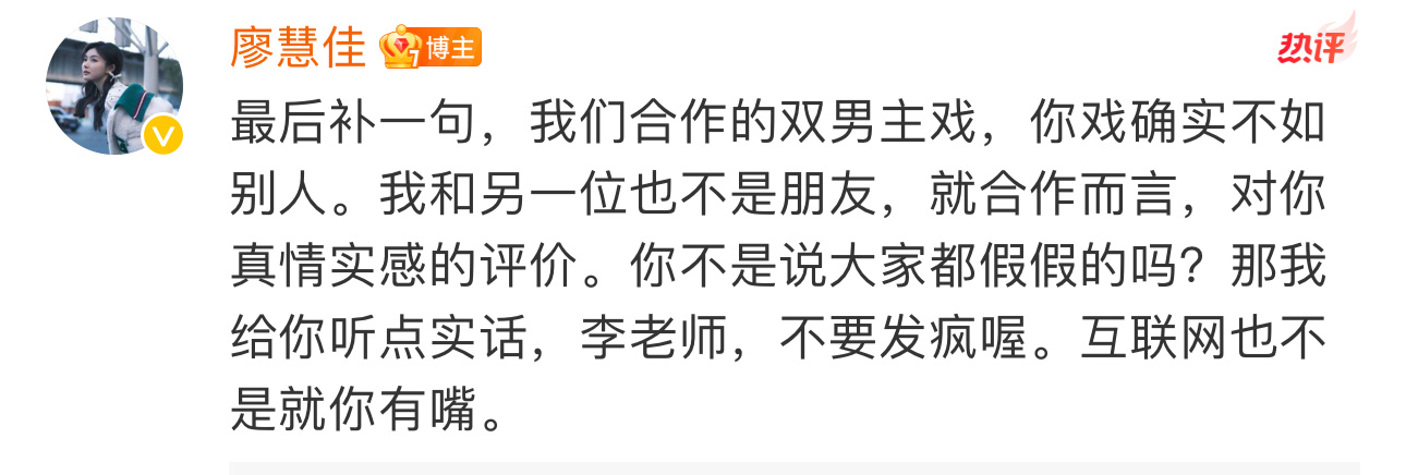 曾合作过李明德的演员廖慧佳发文指责李明德