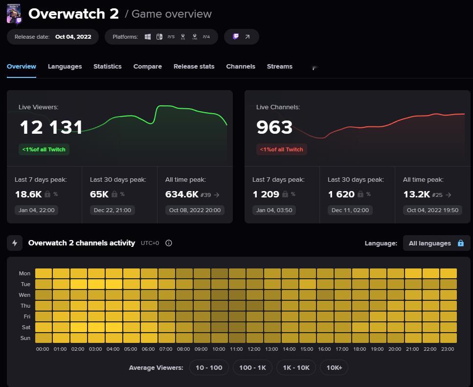 据第三方统计网站 Streamscharts 的数据显示,《守望先锋2》的收视率在《漫威争锋》上线初期出现了明显下滑:11月至12月间,其平均观看人数从2.8万降至1.8万,峰值观众人数更是从12.5万跌至6.4万。