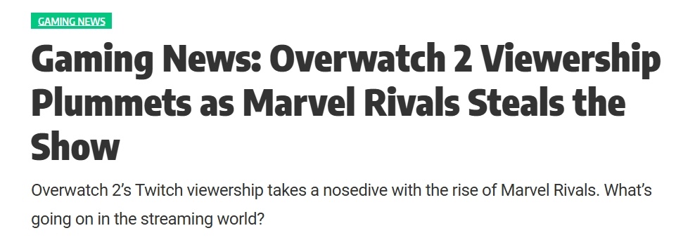 【拼尽全力无法战胜】据外媒报道《 守望先锋 2》直播热度被《 漫威争锋 》全面碾压。