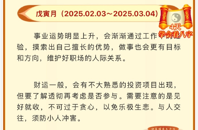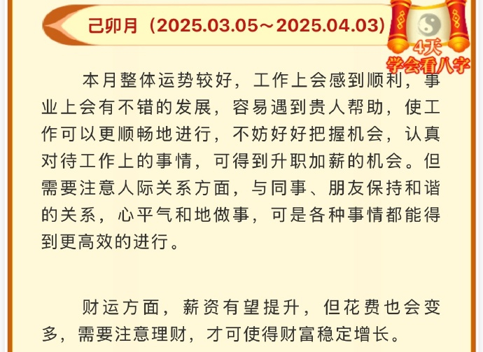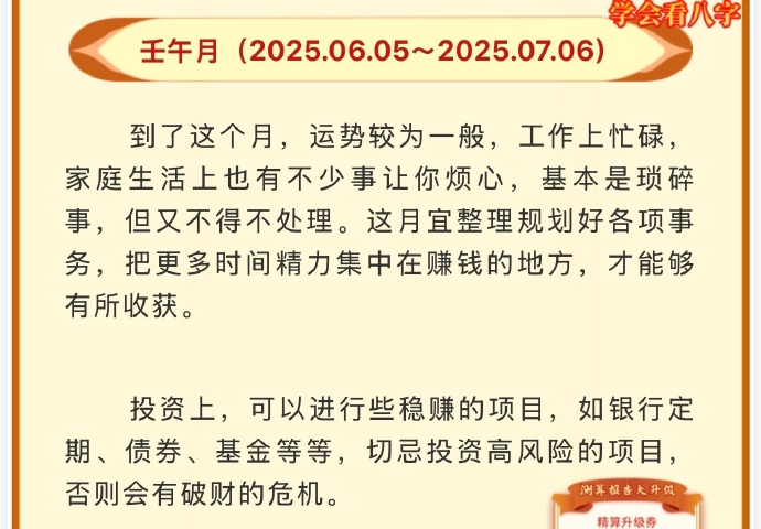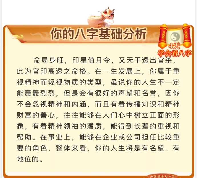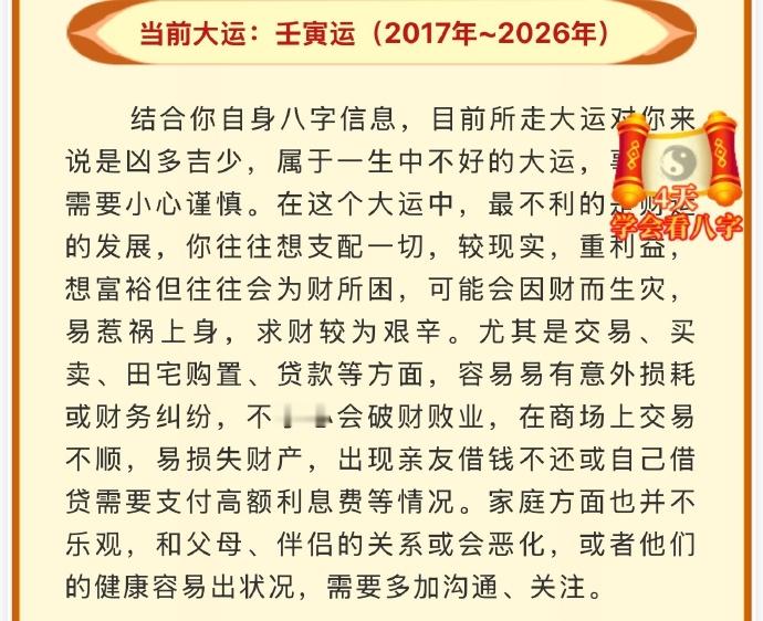 生活在快节奏的社会中,我们对于未来,总是不加预防,等到紧急情况降临,方才觉得措手不及。所以,本测试的意义,不是要让你笃信命理,而是让你对于未来,包括对于身边的诸多人诸多事,都能够多一份了解,多一个视角。不必花费太多时间与精力,就能够趋利避害,未雨绸缪。下图是我万字测试报告中的极少部分截图,赶快测试起来吧,测试🔗放在评论区里了,有需要的朋友赶紧看看喔(好的就信,不好的就不信),当龙傲天爽文也不是不行。