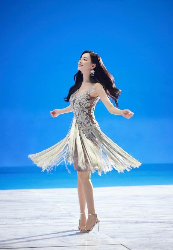 迪丽热巴穿上银色流苏裙,美得就像天上的仙女下凡啦