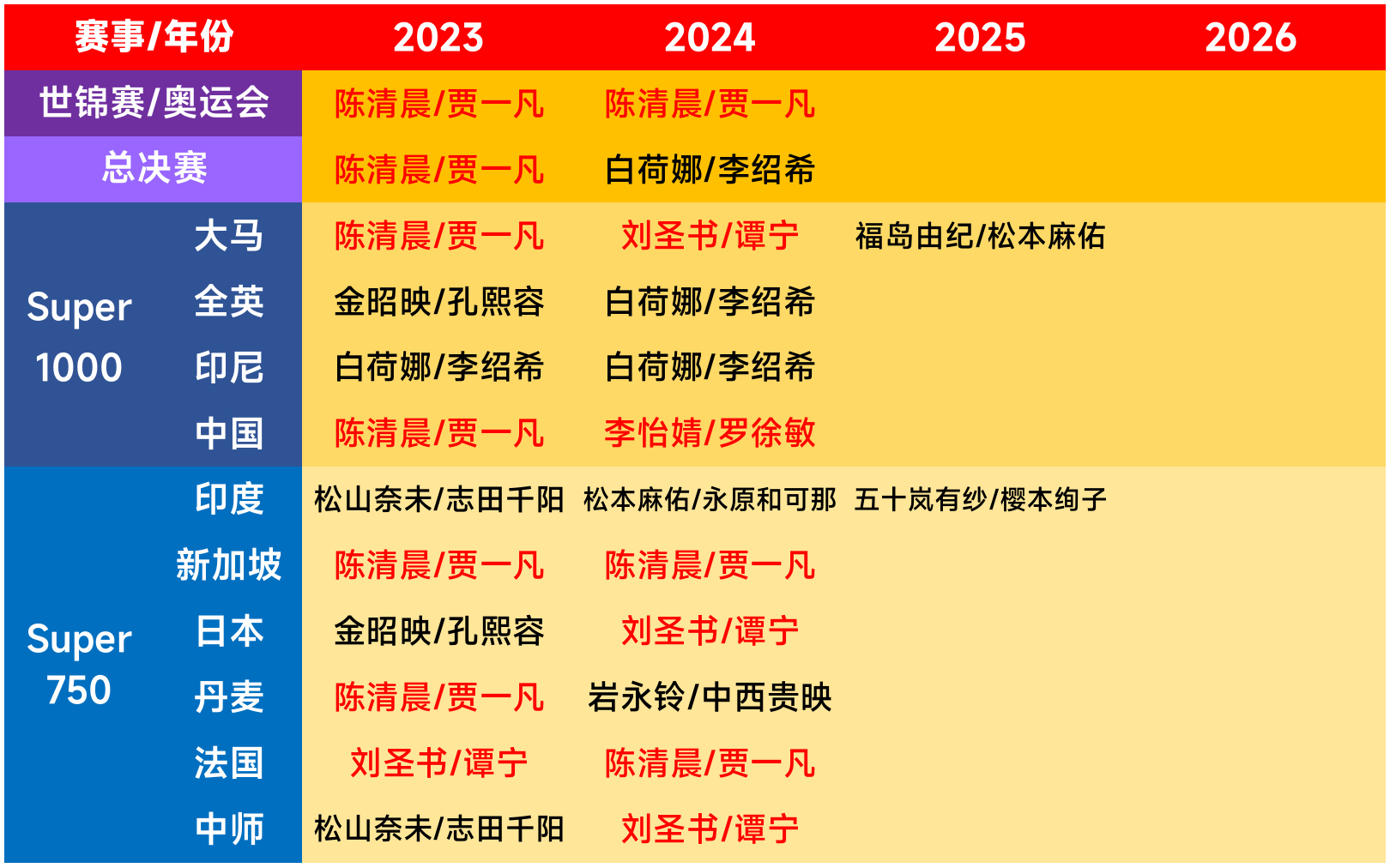 2023-2026巡回赛季:🇨🇳陈清晨/贾一凡暂时位居第一