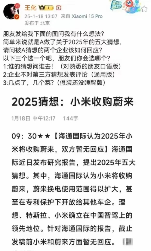 小米要收购蔚来?这真是天大的笑话!小米汽车现在火爆的很,蔚来也是小米投资的,根本不需要收购蔚来,只需要跟蔚来合作就行了,人家小米和蔚来都辟谣了,根本不存在收购的关系,况且小米汽车已经做起来了,自身发展壮大,收购其他亏损车企也是累赘!