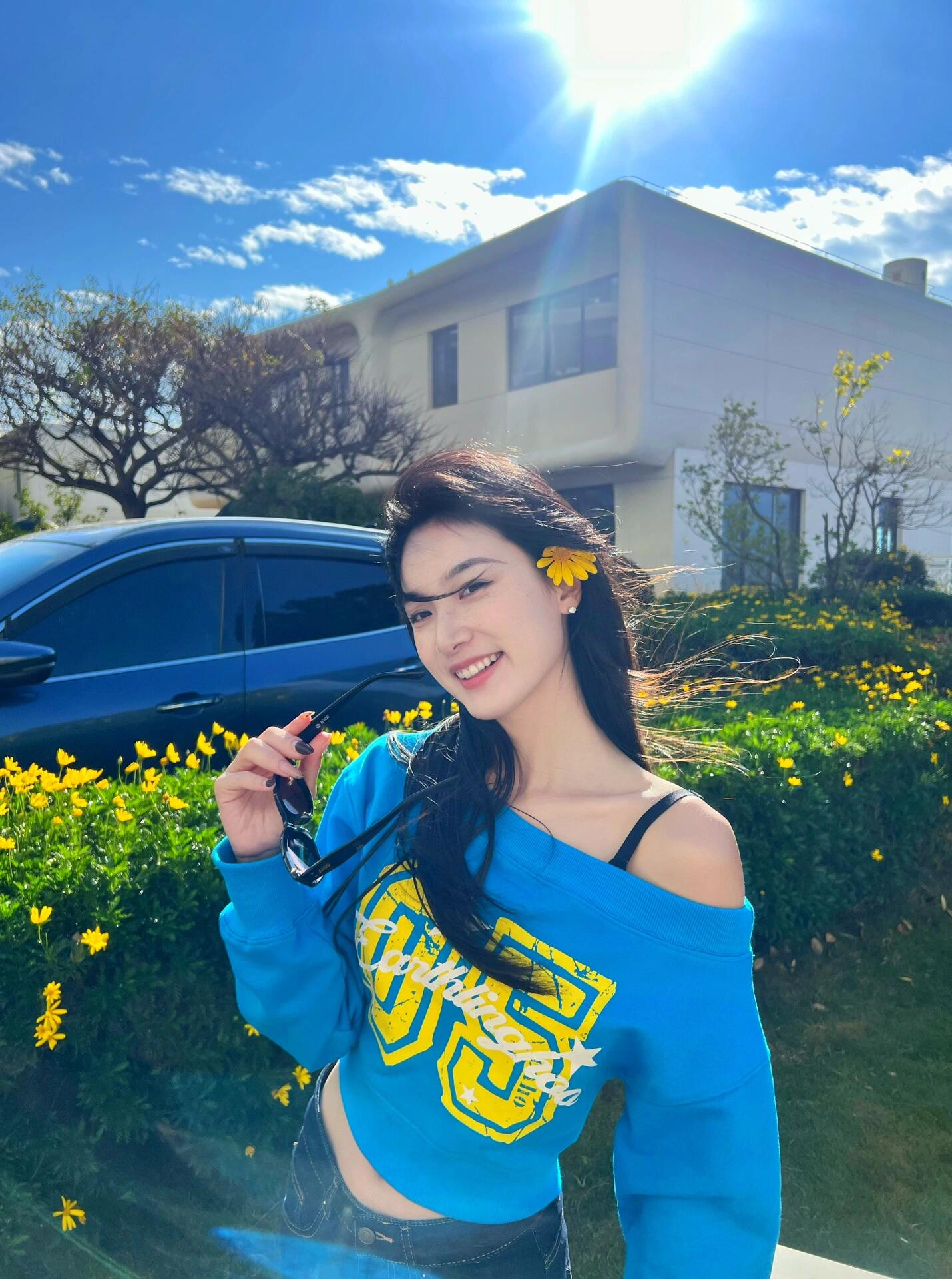 一袭粉缎抹胸长裙裹着柔光,吴宣仪的肩颈线条与锁骨曲线美得恰到好处,是行走的春日甜