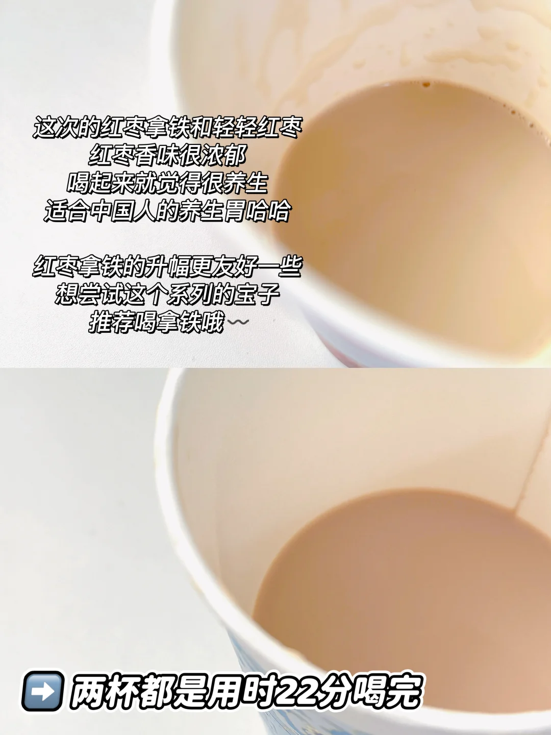 红枣拿铁的升幅更友好一些,想尝试这个系列的宝子,推荐喝拿铁哦〰️