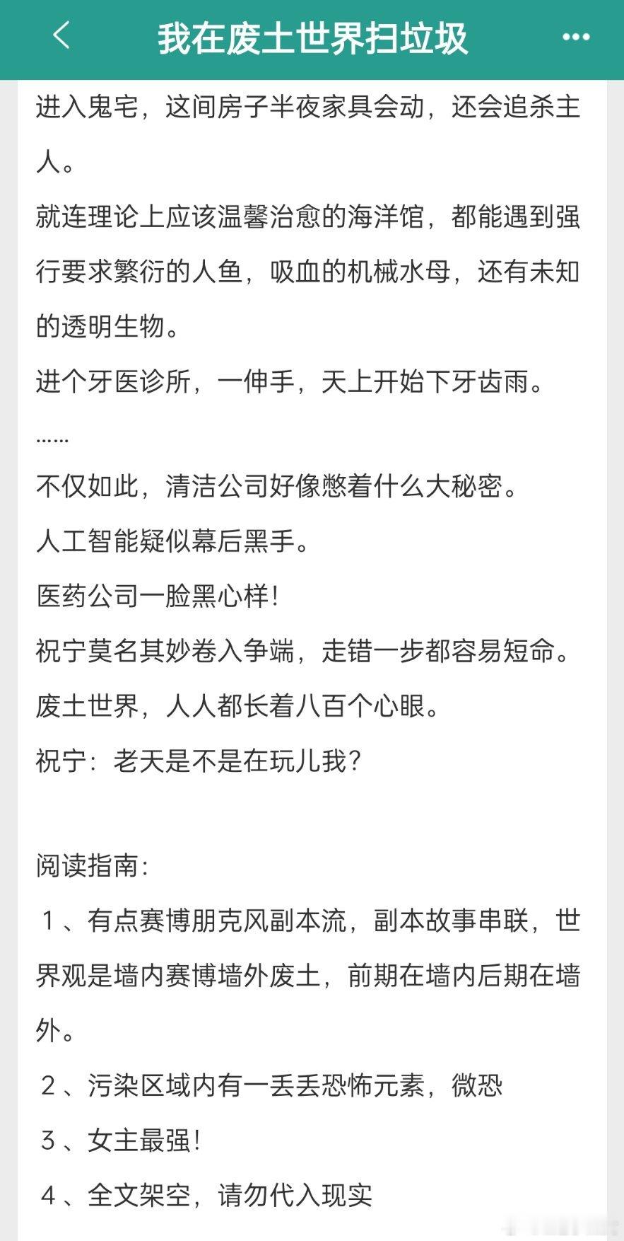不是要给赵今麦画饼。从演戏的气质来说,感觉她很适合我在废土世界扫垃圾,san值大崩溃+女本位视角,与其说是一篇恐怖题材不如说作者先产生了阶层差异的感受,再写了包裹着骇人外衣的躯壳。