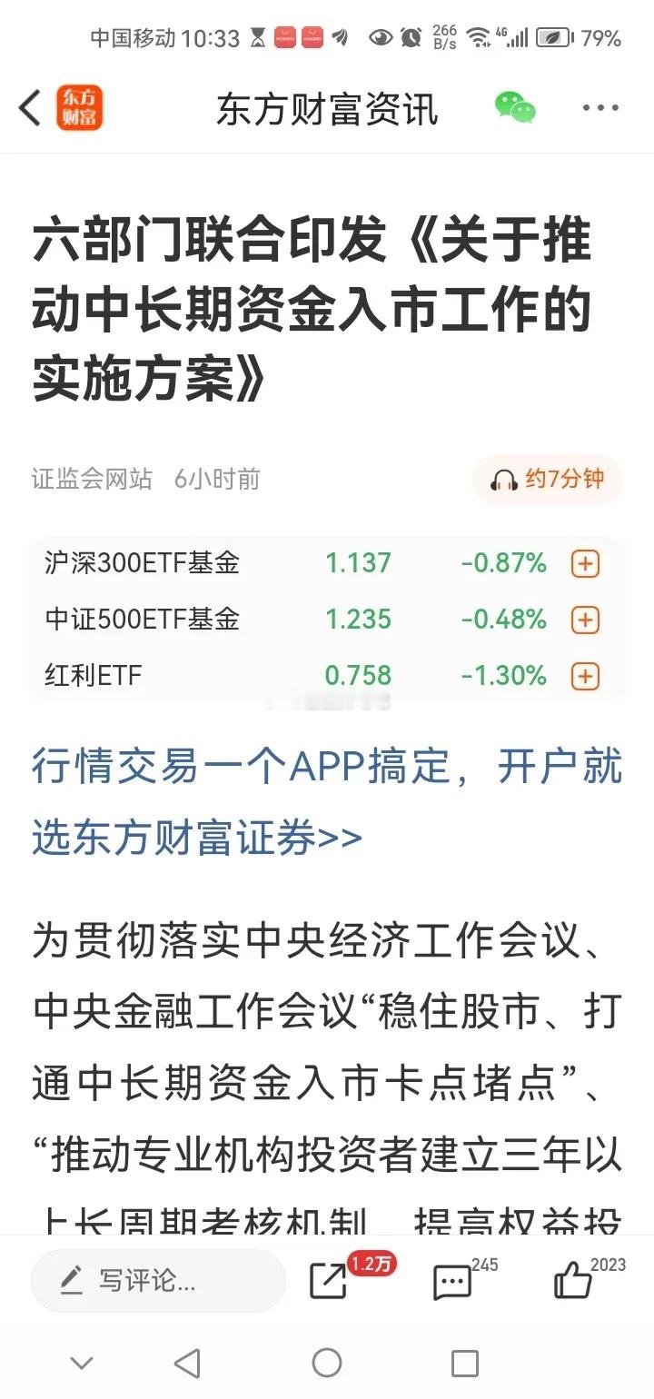 消息三,六部门联合印发《关于推动中长期资金入市工作的实施方案》。这有利加速推动长期资金流入股市中,有利于稳定相关股市,有利于提高投资者信心。对此你们怎么看?
