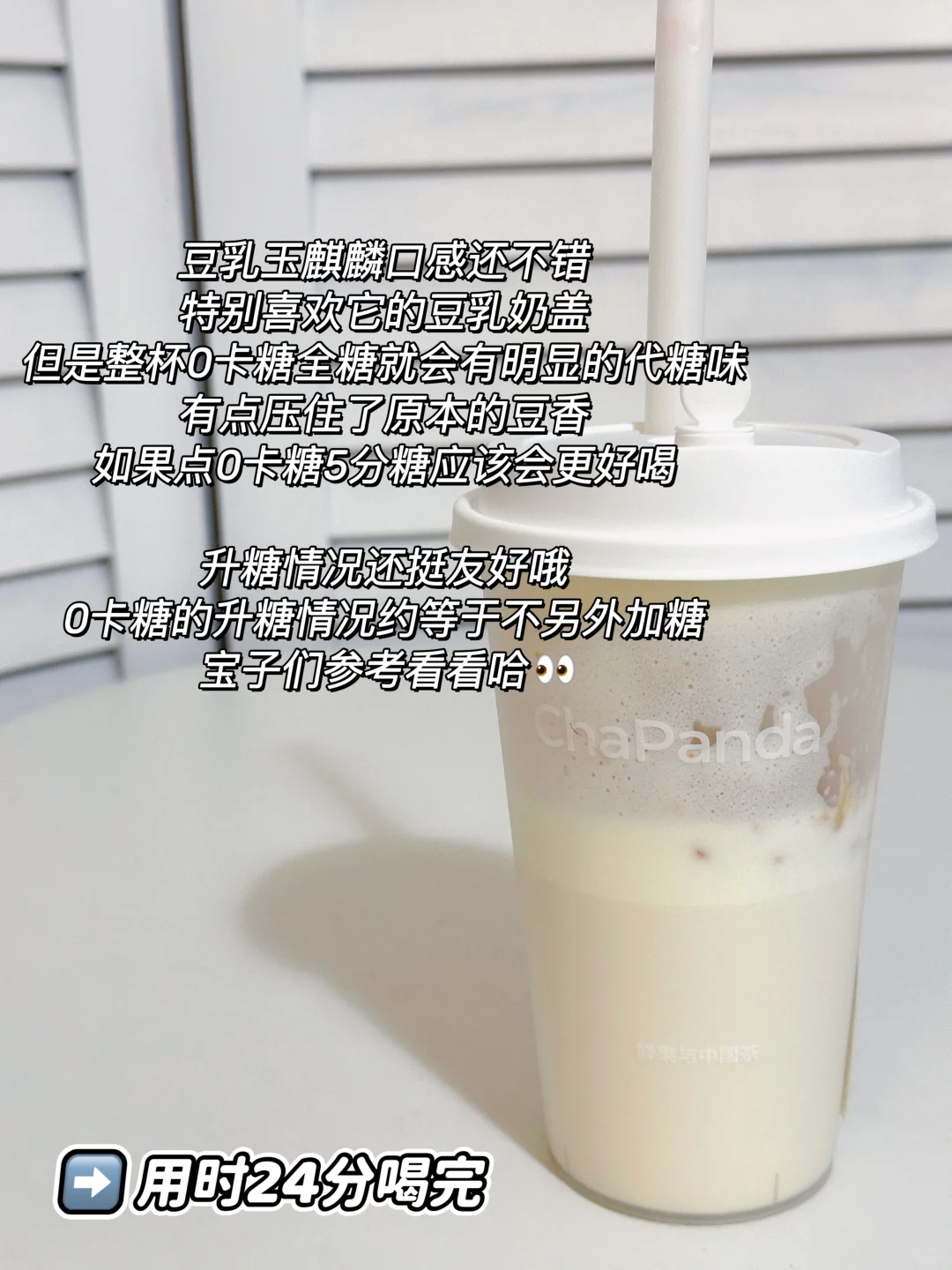 豆乳玉麒麟口感还不错,特别喜欢它的豆乳奶盖〰️但是整杯0卡糖全糖就会有明显的代糖味,有点压住了原本的豆香,如果点0卡糖5分糖应该会更好喝[大笑R]