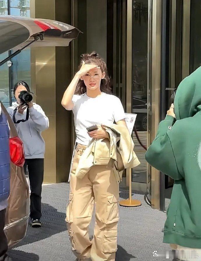 吴艳妮在成都穿着短裤大腿看起来很粗壮,表情自信又张扬