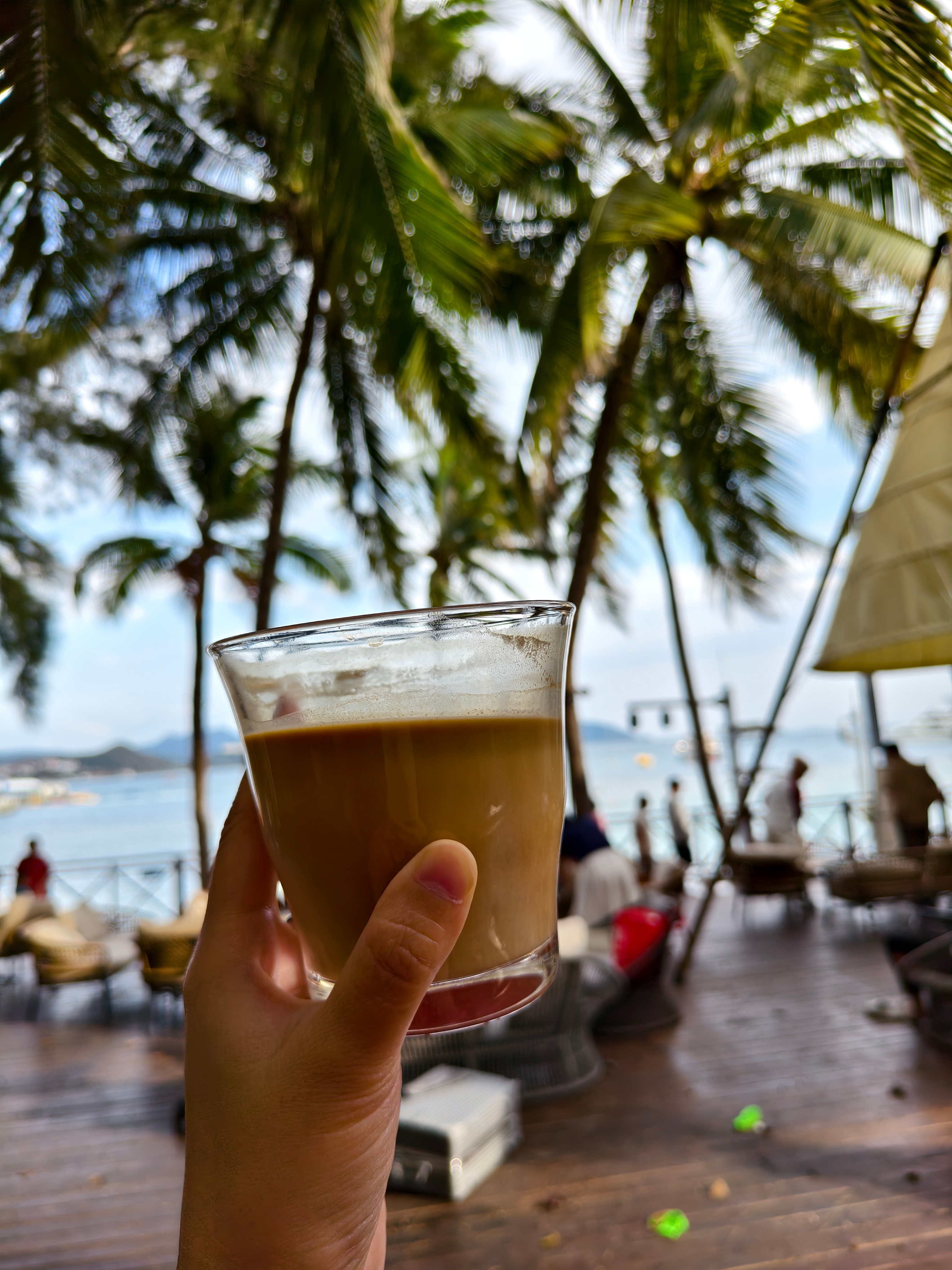 谁说三亚没有玻璃海,人尽皆知的大东海也很美诶,日常去的大东海公共沙滩人略多,怕闹腾的人可能不太喜欢,那这家也在大东海的咖啡厅可以是要推荐一下,名字叫:一尺花园。安静、开阔,有一些小腔调,咖啡的出品也不错,挑个晴朗的日子来坐一下午,非常惬意,喜欢拍照的小姐姐在露天座位超级出片,旁边就是停车场,记得早点来啊~