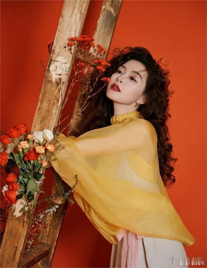 刘亦菲这一身衣服太丑了,用花挡住了才觉得好一点,全靠脸撑着