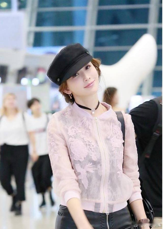 林志玲结婚后气质更年轻!穿粉色半透视外套+皮短裙,报童帽好减龄!