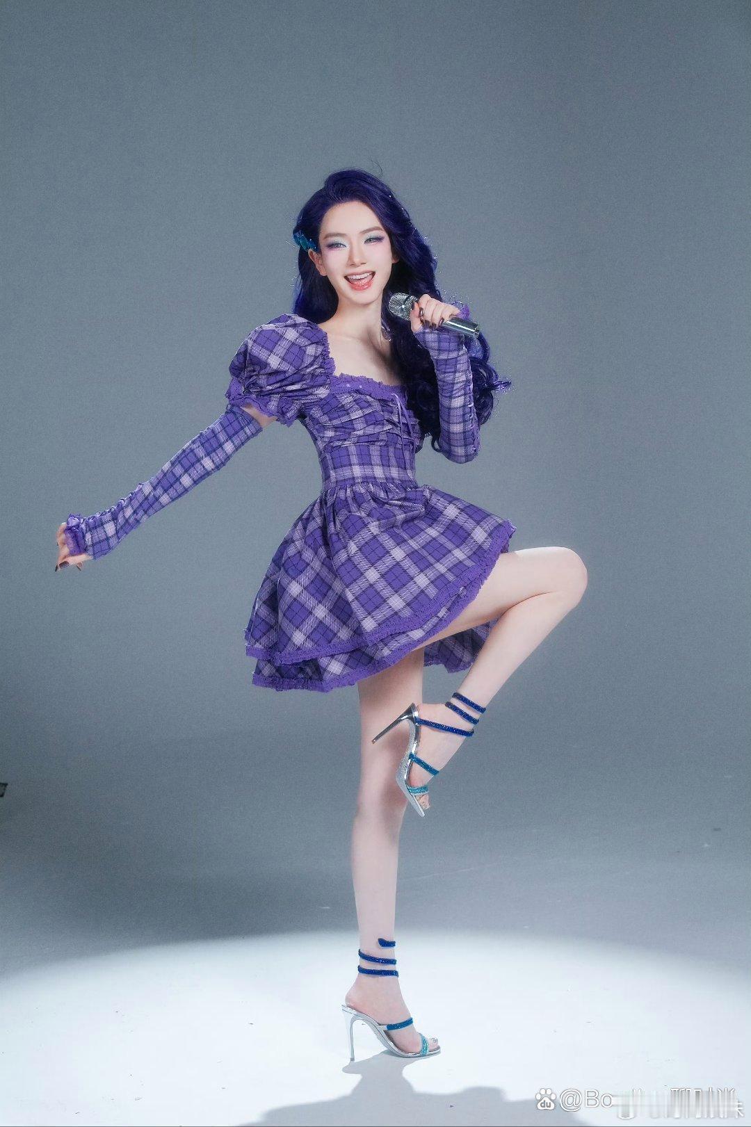 "戚薇穿了件超美的紫色小裙子,拍照POSE满分!"