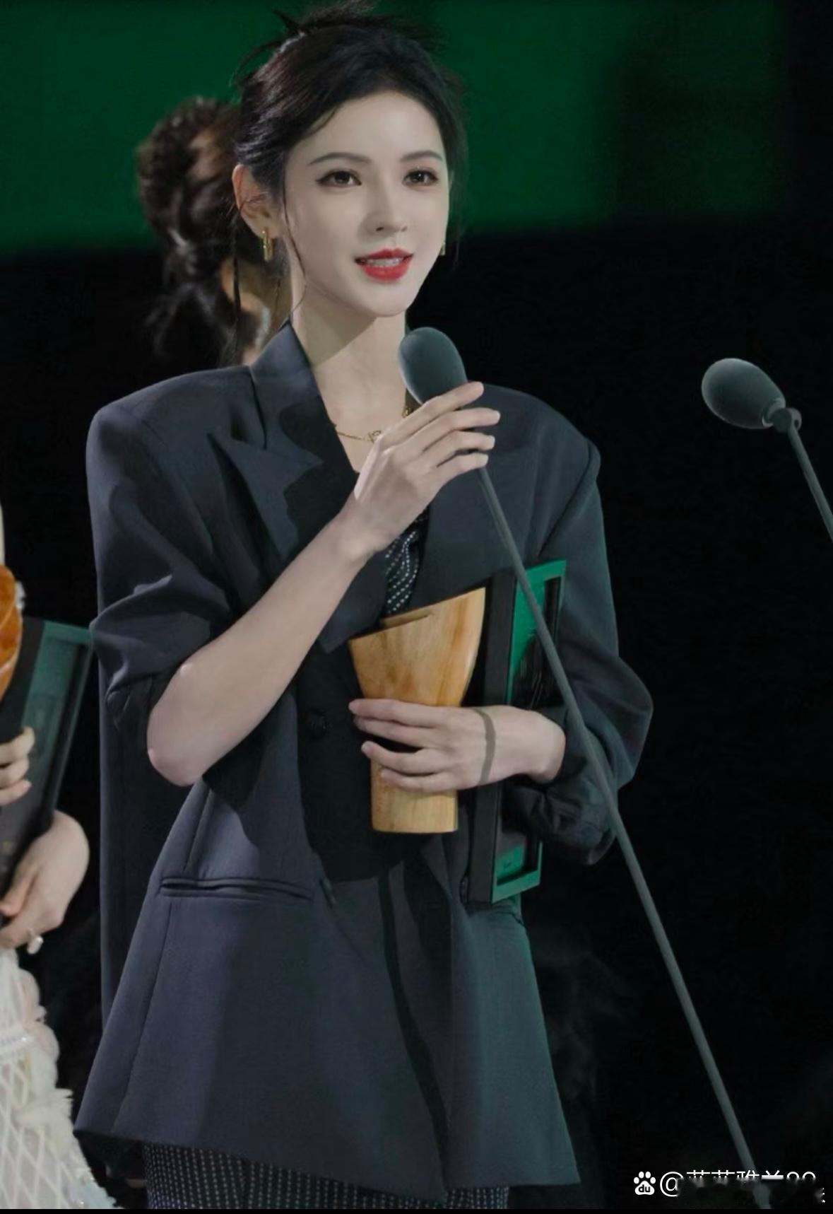但凡张天爱身上有一点赘肉都穿不了这个衣服