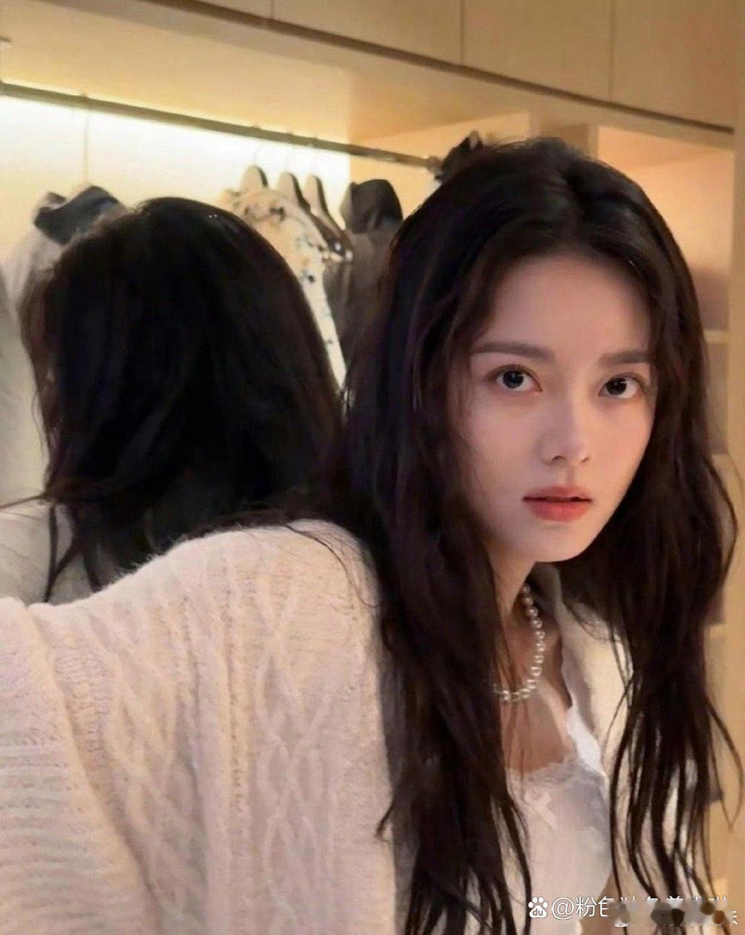 飞机上遇到白鹿。,她本人一点儿也不普,五官清秀素颜皮肤很白很好。她头发蓬乱状态放