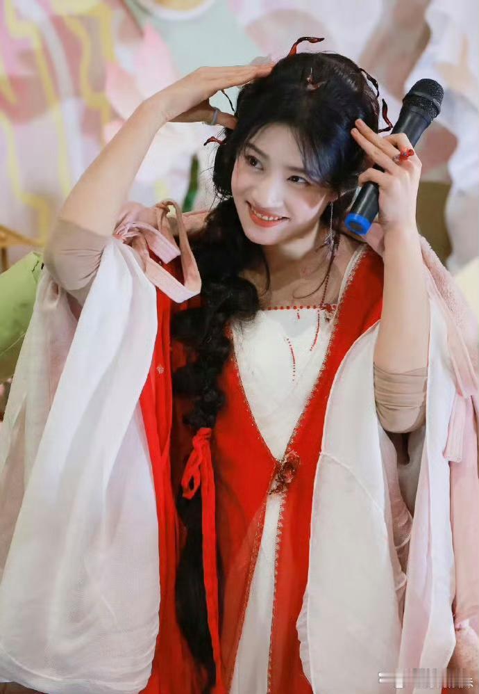 卢昱晓《入青云》杀青照,一身红衣笑起来好明媚