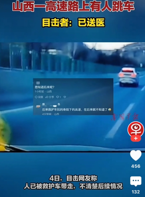据目击者描述,当时车内可能是一对夫妻因矛盾发生争执,女子想要下车,男子则极力阻拦。然而,情绪失控的女子最终还是选择跳车,由于高速上车速虽慢但仍存在极大风险,女子摔得不轻,随后被紧急送往医院救治。