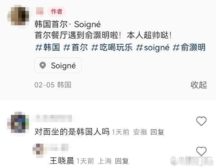 俞灏明王晓晨韩国约会有网友偶遇俞灏明王晓晨在韩国约会,王晓晨大方晒照,两人恋爱