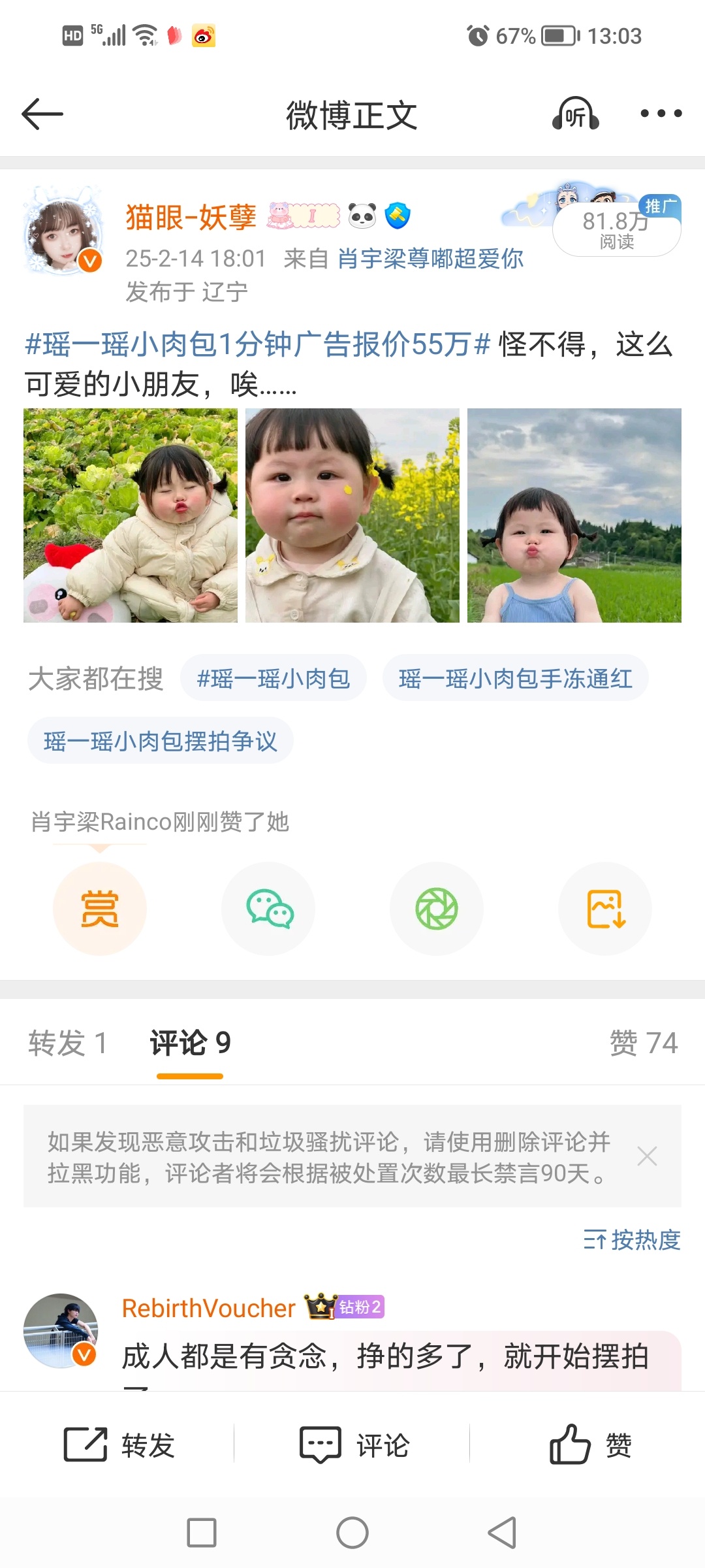 瑶一瑶小肉包1分钟广告报价55万 怪不得,这么可爱的小朋友,唉……