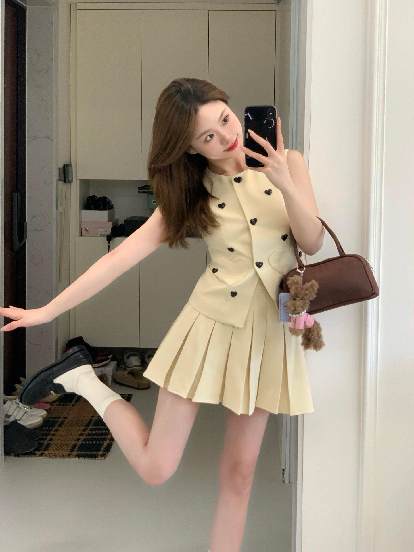 光之影甜美少女风,蕾丝背心搭配灰色短裤,清新自然,元气满满!灰色背心穿搭蓝
