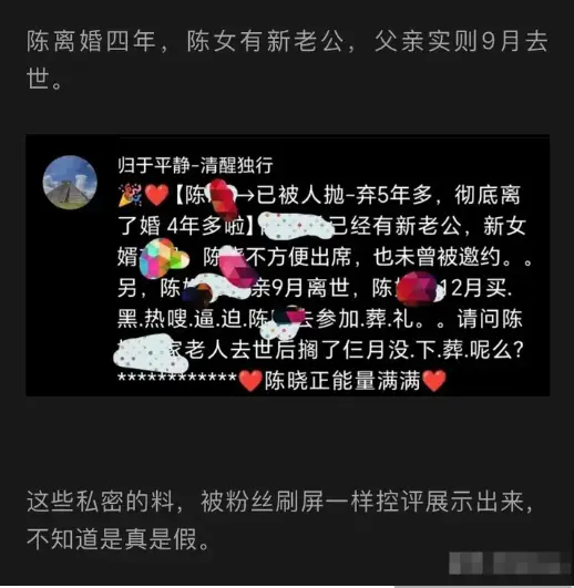 近日,有关陈妍希和陈晓离婚的传闻再次甚嚣尘上,甚至有消息称两人已经离婚好几年了!这一消息无疑让广大网友和粉丝感到震惊和疑惑。传闻中还称,女方陈妍希以“养老存钱”为名,将男方陈晓的钱据为己有,挥霍无度,并在2020年就已经把陈晓甩了。而到了2022年,随着陈晓事业的回暖,陈妍希又开始试图捆绑他,这一系列的说法让人瞠目结舌。 然而,对于这些传闻,我们还是要保持理性和客观的态度。毕竟,娱乐圈的八卦和传闻往往真假难辨,很多消息都是未经证实就广为流传的。在没有确凿证据的情况下,我们不能轻易相信这些传闻,更不能对当事人进行无端的指责和攻击。 陈晓和陈妍希作为公众人物,他们的婚姻状况一直备受关注。两人因合作《神雕侠侣》而结缘,并育有一子,他们的爱情故事曾经让很多人羡慕不已。然而,婚姻是两个人的事情,其中的冷暖自知。无论他们的婚姻状况如何,我们都应该尊重他们的选择和决定。 如果传闻属实,那么陈晓的隐忍和包容确实让人佩服。但无论如何,我们都不能仅凭传闻就对他们的婚姻做出评判。希望他们能够妥善处理自己的感情问题,同时也希望广大网友能够保持理性态度,不要过度猜测和议论他们的私事。