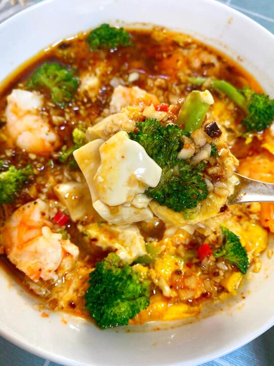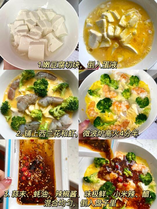 - 微波炉做的鸡蛋豆腐好好吃!! 口感嫩嫩的,加了虾和西兰花,低卡又饱腹 姐妹们都🉑去试试!!