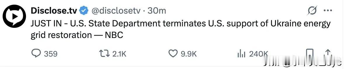 美国国务院刚刚终止了美国对乌克兰电网恢复的支持。 泽连斯基入戏太深,到现在都不知道自己的位置。一直以为自己是主场的主角,其实只是一个小丑,正如万斯说的那样,没有美国的支持,你什么都不是。