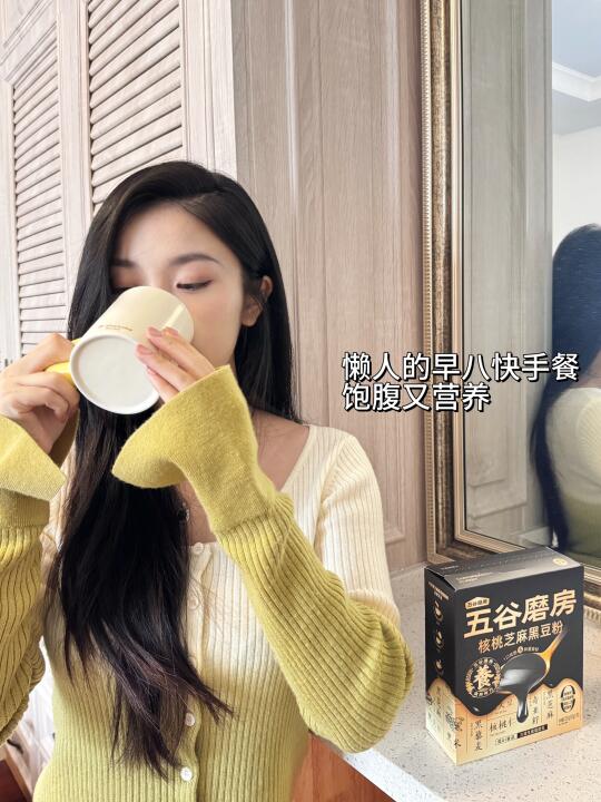 我平时主要是吃五谷磨房核桃芝麻黑豆粉