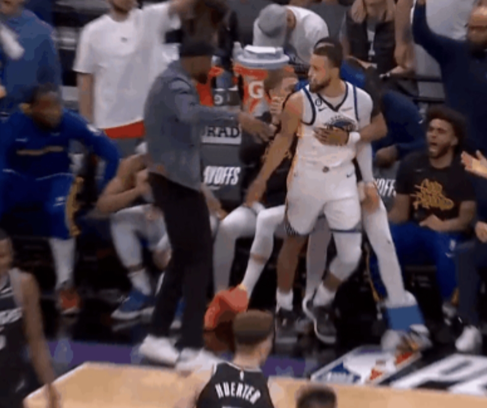 盲狙啊你!库里logo3分,不看筐直接扔!