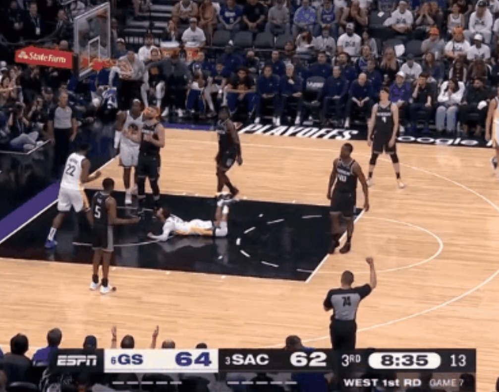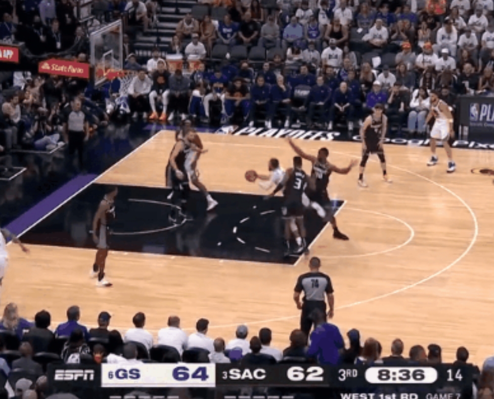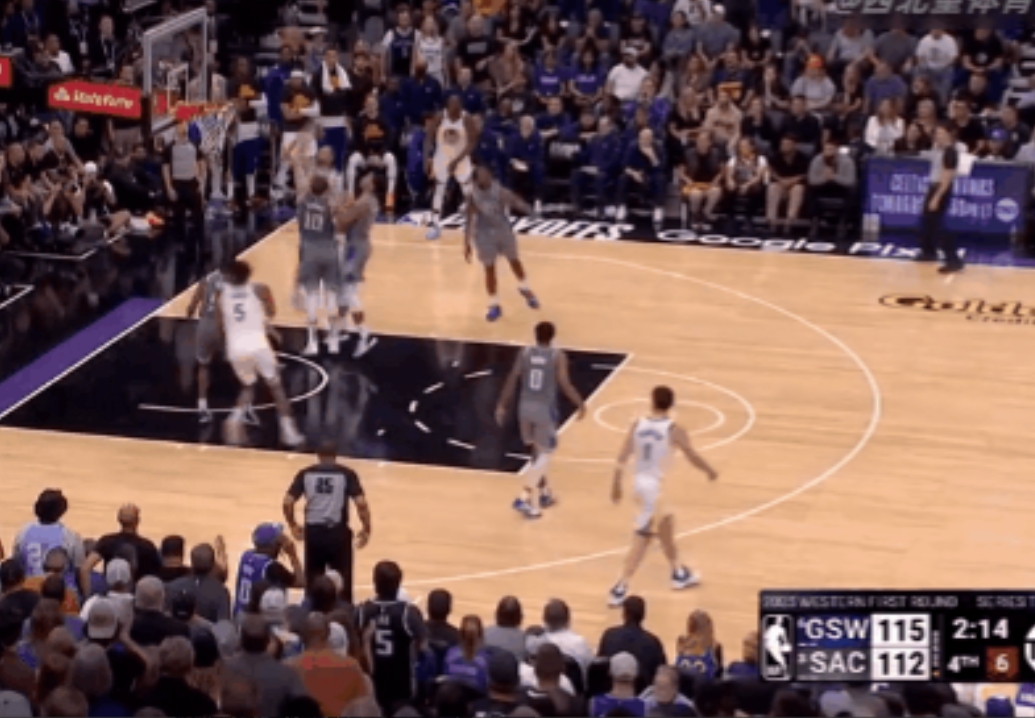 勇士客场对阵篮网,上半场最后一攻,巴特勒停球在剩余2秒的时候交给库里,库里背身接球,直接侧过来拿起来就投,扔出了一个logo3分。
