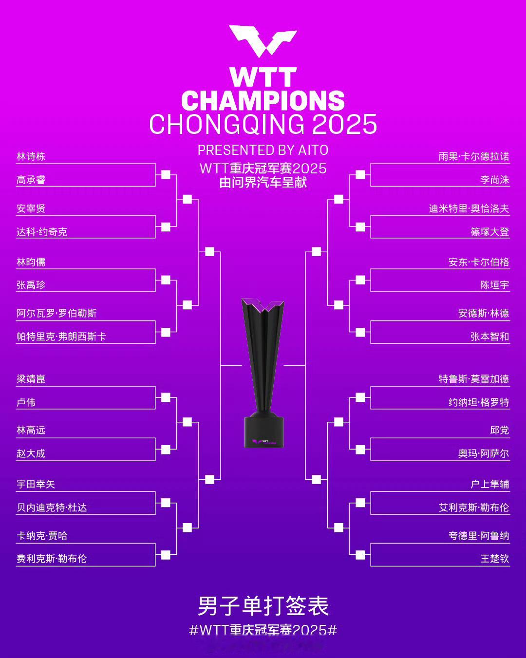 2025重庆冠军赛|签表 女单&男单 3.11-3.16