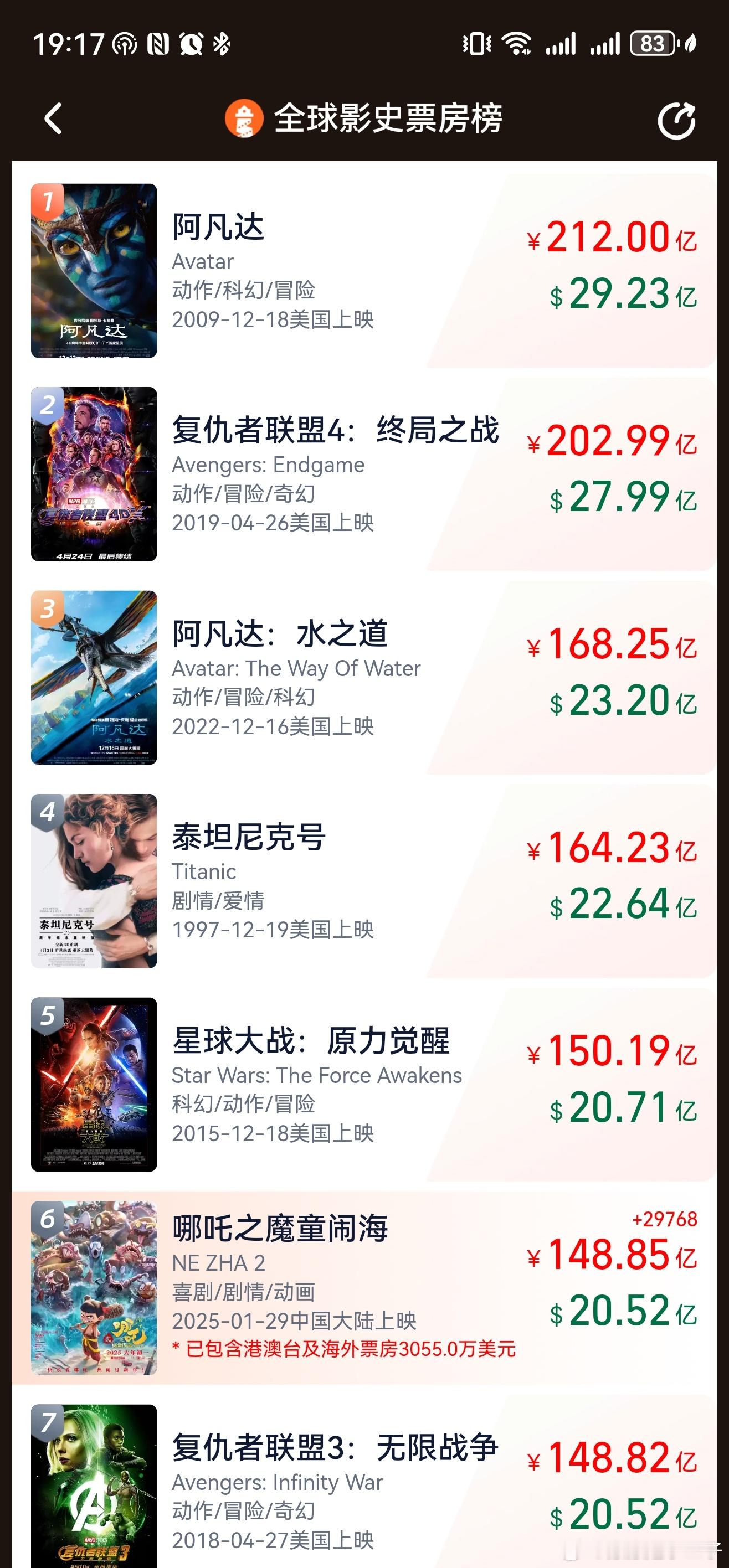 哪吒2冲上全球第6🐱还没到,灯塔到了,不重要,反正都会到的,恭喜吒儿又一次创造历史,期待吒儿创造更多历史[彩虹屁][彩虹屁][彩虹屁]