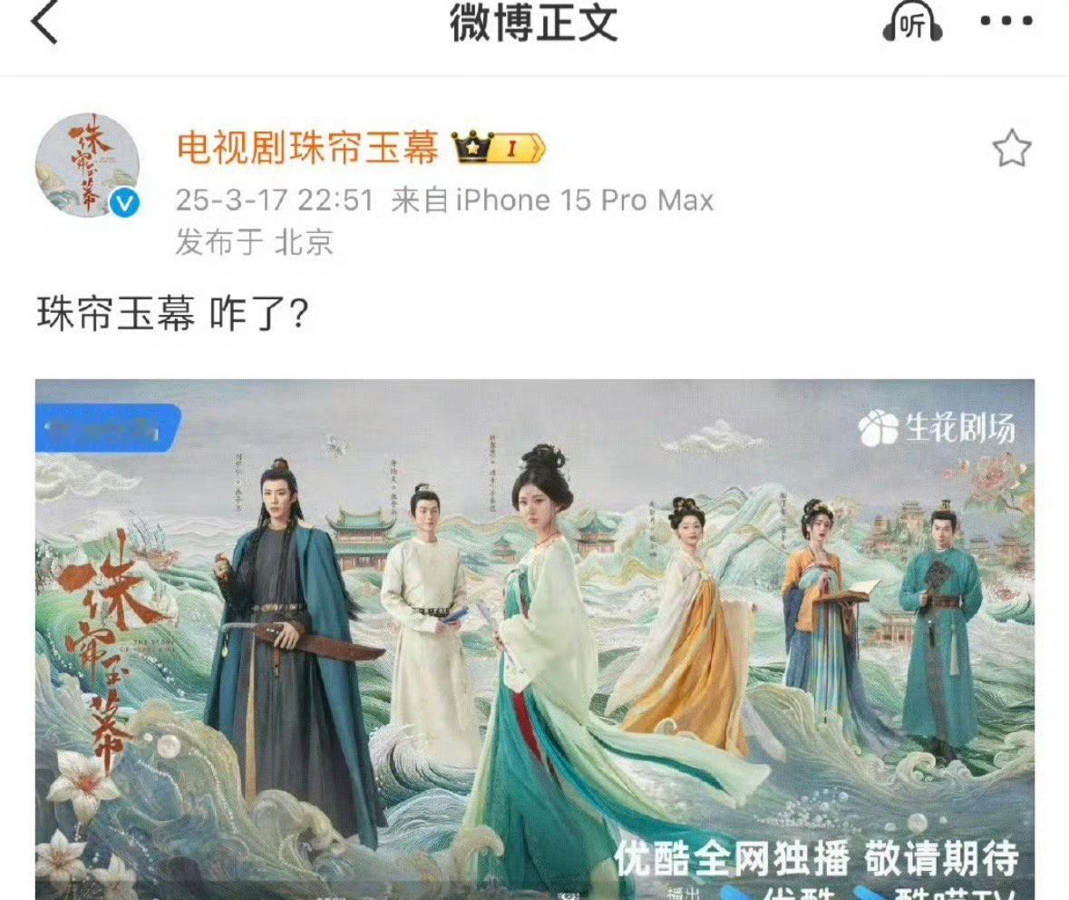 刘宇宁为珠帘玉幕平反了。因为永夜星河,让人以为珠帘玉幕扑了。其实珠帘玉幕三天破万