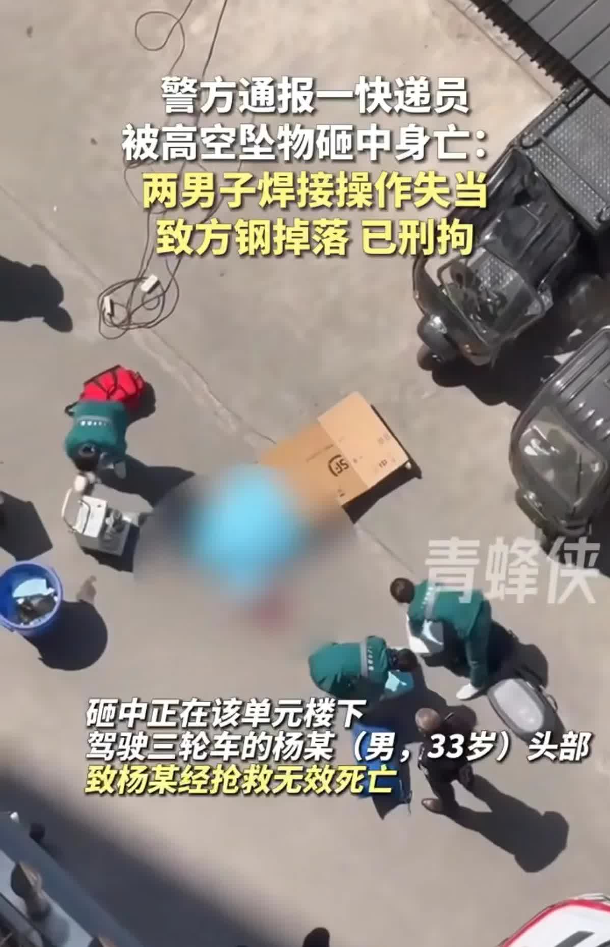 四川 一小区 高空坠物砸死 快递员 2025年3月25日,四川 巴中市回风街道某小区发生一起高空坠物致死事件,一名32岁的顺丰快递员被高空坠落的钢筋击中身亡。据警方通报,肇事者已被控制,案件正在进一步侦办中。