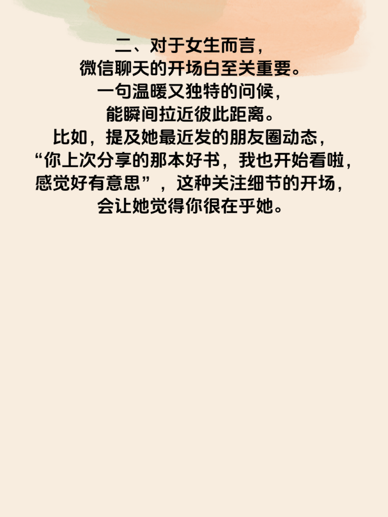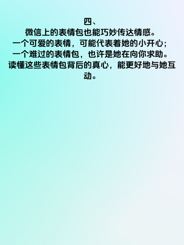 一、在女性的情感世界里,微信成了秘密与真心交织的独特空间。每一条消息、每一次聊天背景的更换,都可能暗藏着她们的小心思。 二、对于女生而言,微信聊天的开场白至关重要。一句温暖又独特的问候,能瞬间拉近彼此距离。比如,提及她最近发的朋友圈动态,“你上次分享的那本好书,我也开始看啦,感觉好有意思”,这种关注细节的开场,会让她觉得你很在乎她。 三、而聊天过程中的倾听更是关键。不要急于表达自己,耐心听她倾诉喜怒哀乐。适时给予回应,比如点头、简单的附和语,让她感受到你在认真聆听。 四、微信上的表情包也能巧妙传达情感。一个可爱的表情可能代表着她的小开心,一个难过的表情包也许是她在向你求助。读懂这些表情包背后的真心,能更好地与她互动。 五、此外,朋友圈的互动也不容忽视。点赞、评论她分享的生活点滴,让她知道你一直在关注她的世界,从而慢慢走进她内心深处那个充满秘密与真心的情感世界。