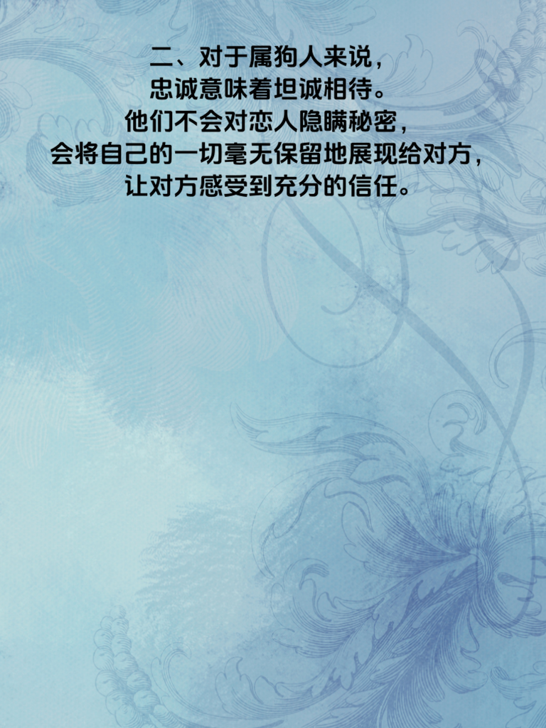 一、属狗的人在恋爱中,有着独特而坚定的恋爱哲学,那就是忠诚守护爱情。他们一旦爱上一个人,便会全心全意投入,视忠诚为爱情的基石。 二、对于属狗人来说,忠诚意味着坦诚相待。他们不会对恋人隐瞒秘密,会将自己的一切毫无保留地展现给对方,让对方感受到充分的信任。 三、在面对诱惑时,属狗人能坚守本心。他们深知爱情需要专一,不会轻易被外界因素干扰,始终围绕在恋人身边,给予安全感。 四、他们会用实际行动来诠释忠诚。无论是日常的关心照顾,还是在困难时刻的不离不弃,都体现着他们守护爱情的决心。 五、如果你身边有属狗的人,不妨珍惜这份忠诚。因为在他们的恋爱哲学里,忠诚守护爱情是最珍贵的承诺,能为你带来长久而稳定的幸福。