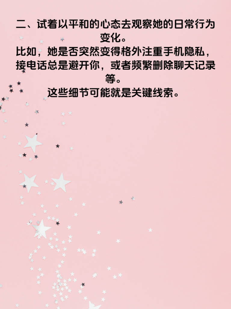 一、在婚姻中,当发现她的手机似乎藏着小秘密,尤其是涉及婚内出轨的蛛丝马迹时,很多人会陷入慌乱与痛苦。其实,首先要做的是让自己冷静下来。冲动行事只会让情况更糟。 二、试着以平和的心态去观察她的日常行为变化。比如,她是否突然变得格外注重手机隐私,接电话总是避开你,或者频繁删除聊天记录等。这些细节可能就是关键线索。 三、但不要急于质问,而是巧妙地旁敲侧击。比如,不经意地提及一些关于忠诚、婚姻的话题,观察她的反应。如果她表现得异常紧张或回避,那可能真的有问题。 四、一旦确认了婚内出轨的事实,不要马上大吵大闹。给自己一些时间去思考如何妥善处理。可以找个合适的时机,坦诚地和她沟通,表达你的感受和对婚姻的重视。 五、无论结果如何,都要记住,你值得拥有真正忠诚和幸福的婚姻。不要因为她的错误而否定自己,勇敢地面对,为自己的未来负责。
