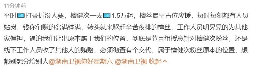 我们辛苦夜排占位应援,排了半个多月,现在还搞还搞恐吓那一出,这么多年一直都是这样的凭啥某人一来就这么偏袒他,人多还是我们的错了?我们行为没有任何问题!!