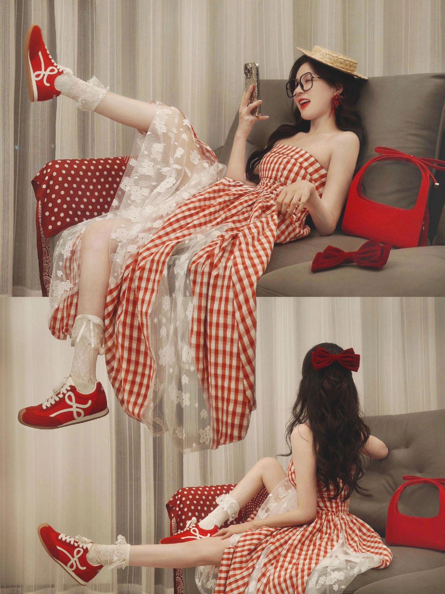 弯腰的那一瞬,全场焦点都在你身上。没想到女神眼纹也这么重,都笑出褶子来了。裙子很