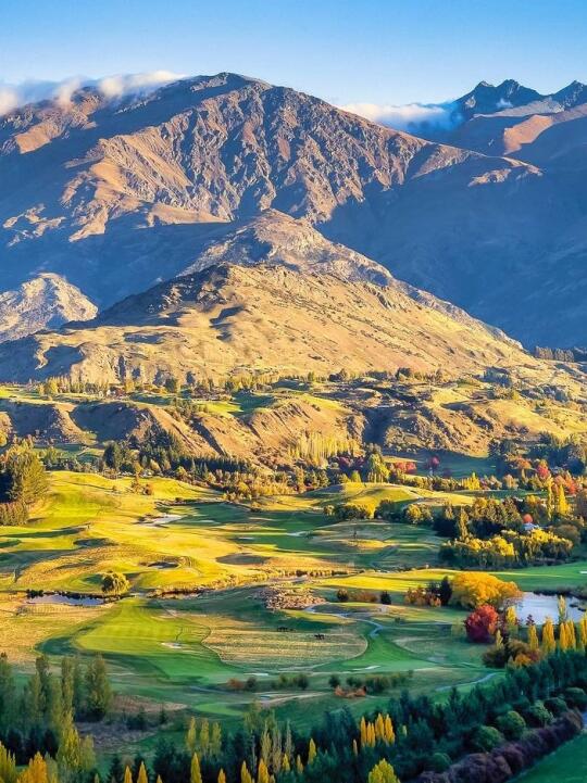 新西兰秋天Z美⛳高尔夫度假村!被群山环绕,也是少有秋冬营业的高尔夫球场